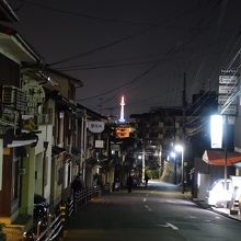 清水寺の「夜の特別拝観」を終えて、清水坂を下り、五条坂に入ると正面に京都タワーが現れます。写真で見ると小さくしか見えませんが、しっかりと存在感のある姿でした。
