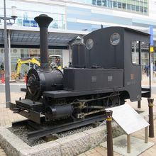 熱海駅前ロータリー西側の歩道上、仲見世通り入口前に小さな蒸気機関車が展示されています。これが熱海軽便鉄道機関車です。国鉄が開業する前に小田原と熱海間25kmを2時間40分で結んでいた記念すべき鉄道遺産です。普通の蒸気機関車はとても大きいですが、この機関車はちょっと大きな車程の大きさ。とても可愛い機関車です。