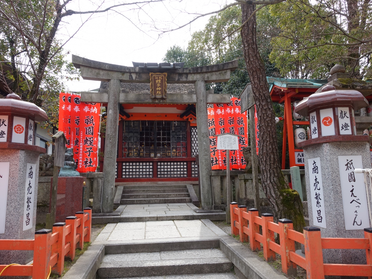 「北向蛭子社」は、八坂神社の境内にたくさんある境内内神社のひとつで、その中においては華やかで目立つ存在です。
