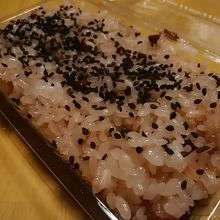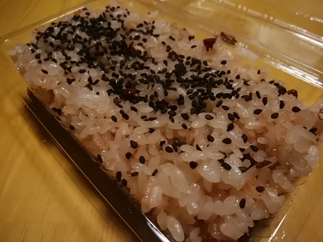 お赤飯1パック370円(税込)と、いなり寿司1つ80円(税込)を2つ購入。お赤飯は注文が入ってからパック詰めしてくれるので、ほかほか。
