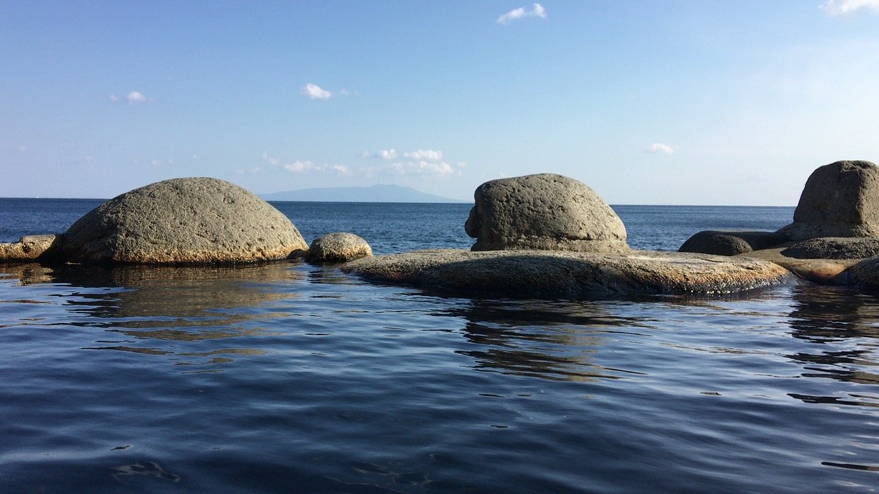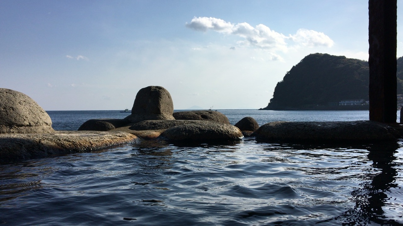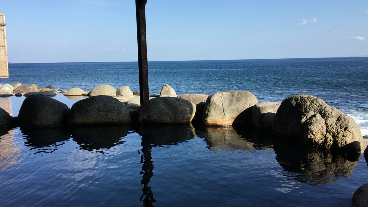 伊豆エリアでまさに目の前が海を見ながら入れる露天風呂があうのがここ「北川温泉」。この北川温泉の特徴的なのが、海岸沿いにある、露天風呂です。ここは、湯につかれば、目の前が海と空、素晴らしいです。この時は独泉できたということもあり、この気持ちよい、海沿い露天堪能できました。もちろん、湯船につかれば、そこにインフィニティの空間を味わうことができました。ただ、露天風呂の空いている時間を確認して訪れてみて下さい。