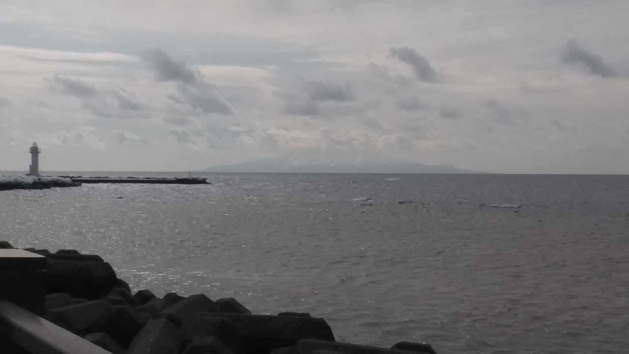 岬はまだ肌寒い風が吹いていましたが、天気は良く遥かに利尻島が遠望出来ました。