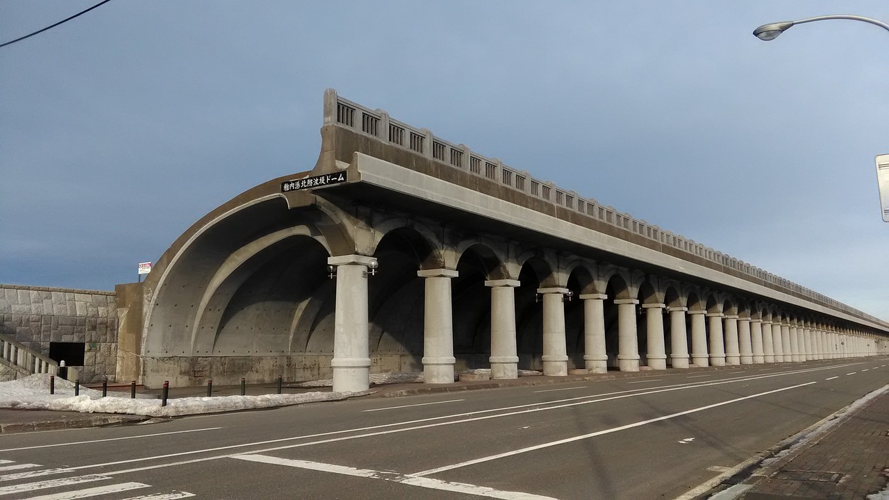 なるほどちょっと見防波堤には見えない面白い造りで、まるでヨーロッパの城壁かなにかの遺跡のようです。