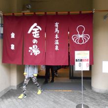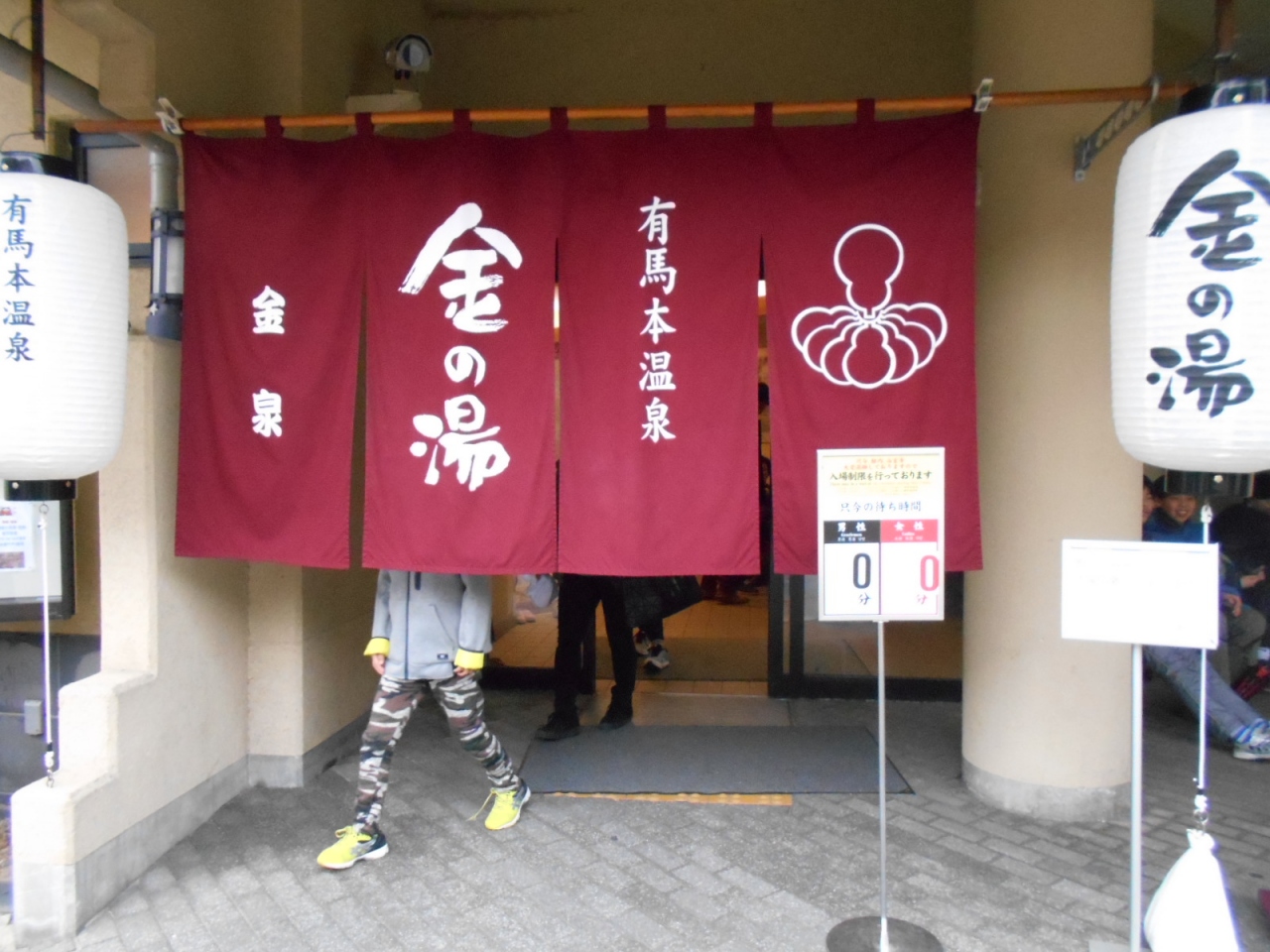 古い公衆浴場を改築した建物で、玄関横のスペースには無料の足湯コーナーと飲泉場があります。人が多くて足湯は今回は断念しました。向いのお店でタオルが売られていました。