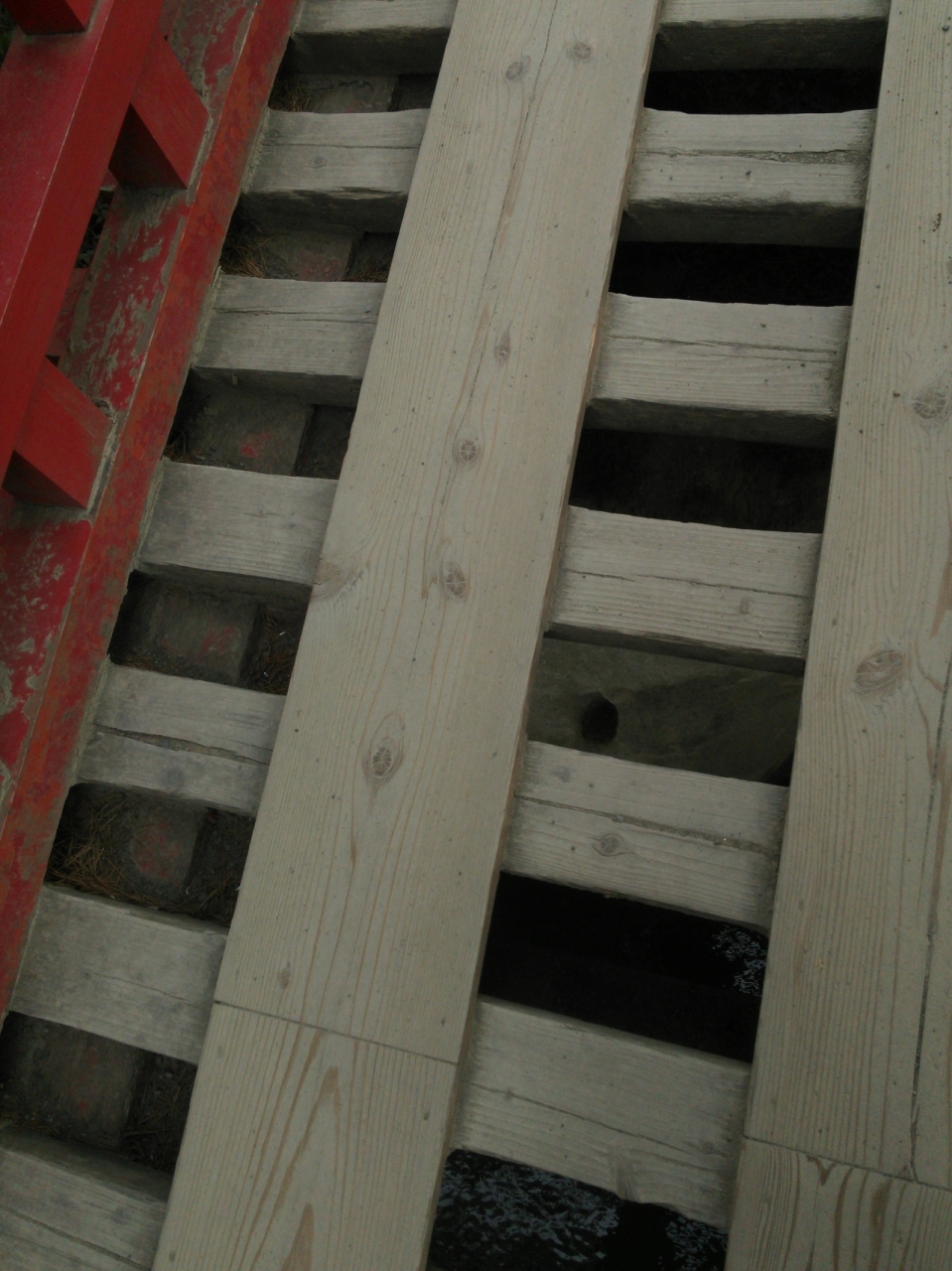 五大堂へは、小さなの橋を渡りますが、足元が透け透けです。下の海水が見えるので足を踏み外しそうなドキドキ感があり、スリル満点です。