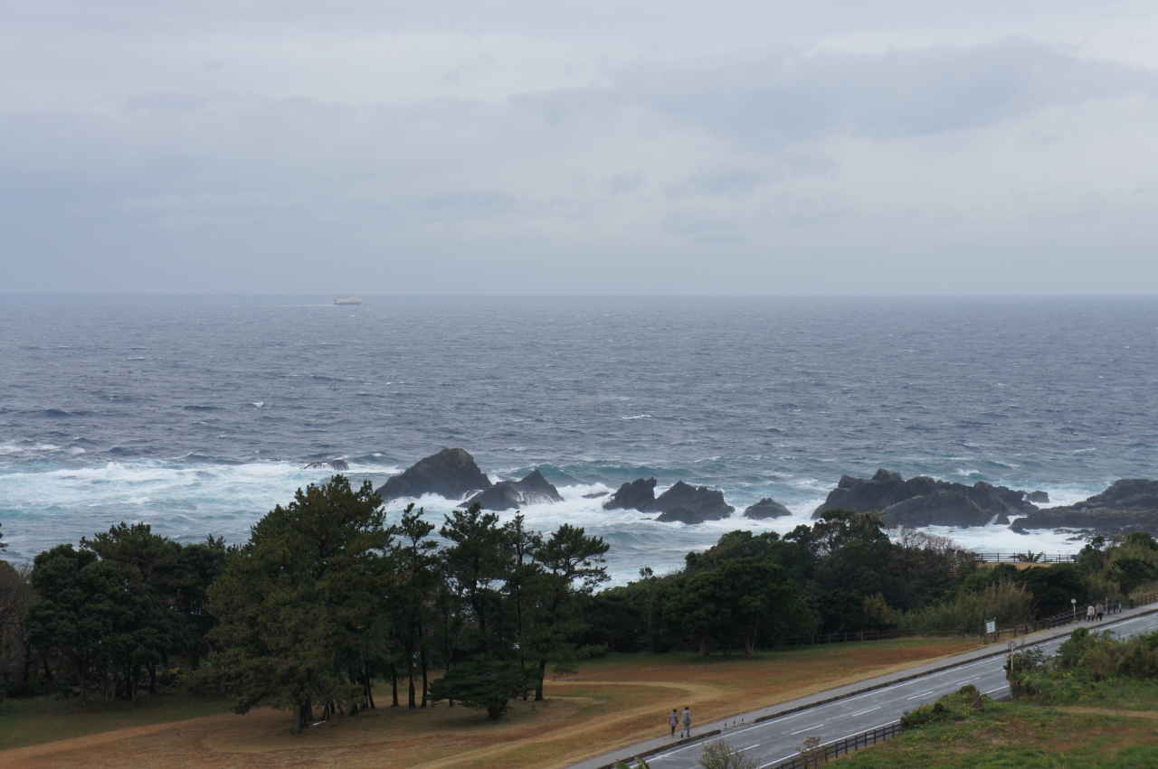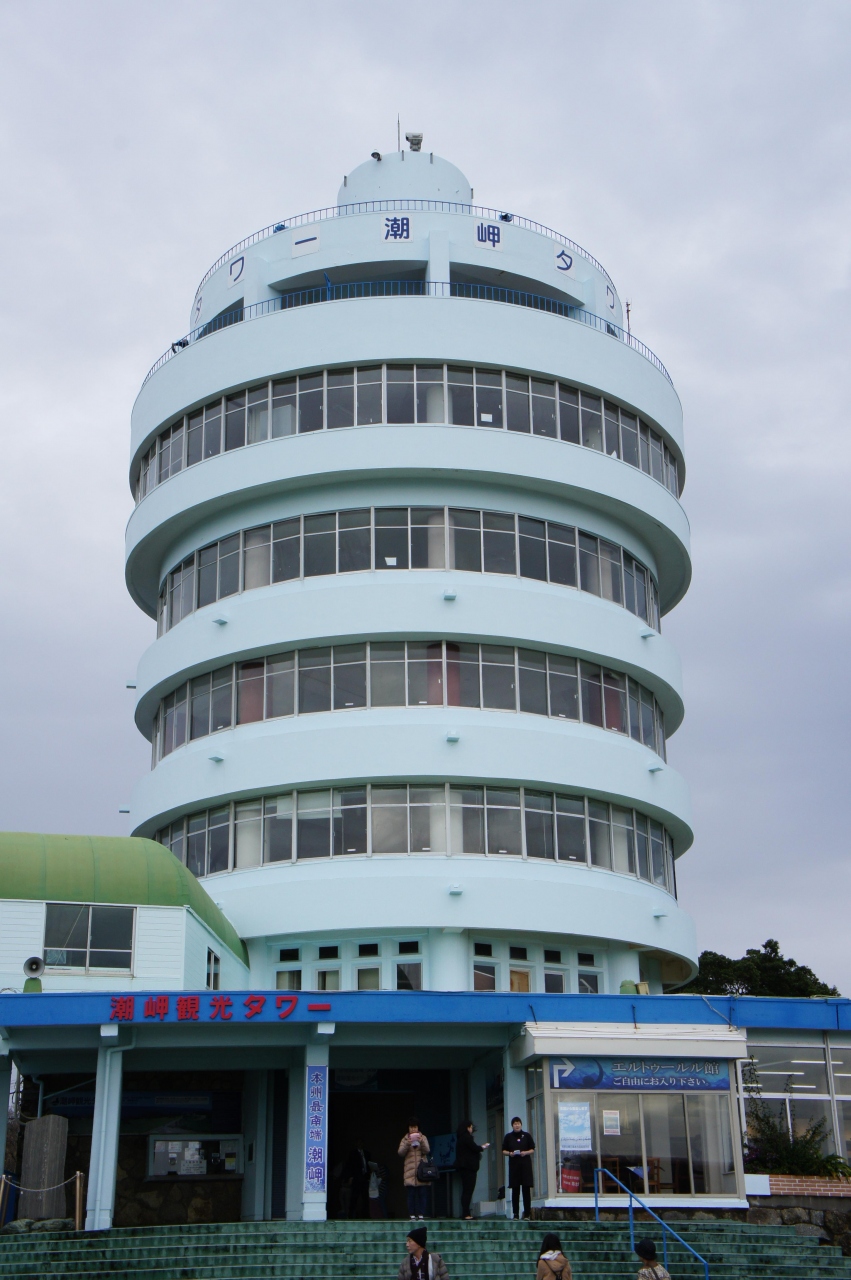 紀伊半島一周バスツアーで潮岬に立ち寄りました。このタワーのエレベーターで展望台まで上りました。展望台から見える景色は360度広がる大パノラマで、特に右側に見える白色の灯台と岬から水平線までの景色には圧倒されてしまいます。タワーの二階にはレストランがありここで昼食を食べました。一階にはお土産店もあり、食事とショッピングの両方ができ、素晴らしい景色も見えますから、紀伊半島での観光としては最適なロケーションと言えるでしょう。