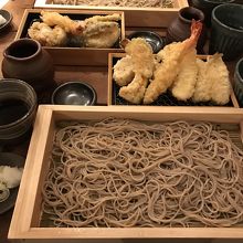 ごはんをたべたくて飲食フロアをうろうろ。あっさりとしたそばが食べたいということで入店。ざるそばと天ぷらのセットにしました。天ぷらはもちろん揚げたてでおいしいです。そばもちょうどいいボリュームで大満足でした。