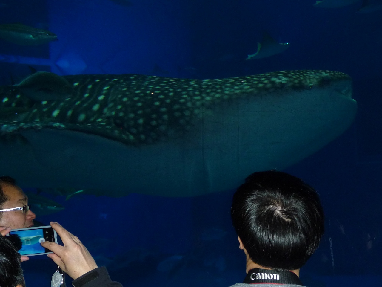 - 水槽とジンベイザメの大きいこと、アッと驚く