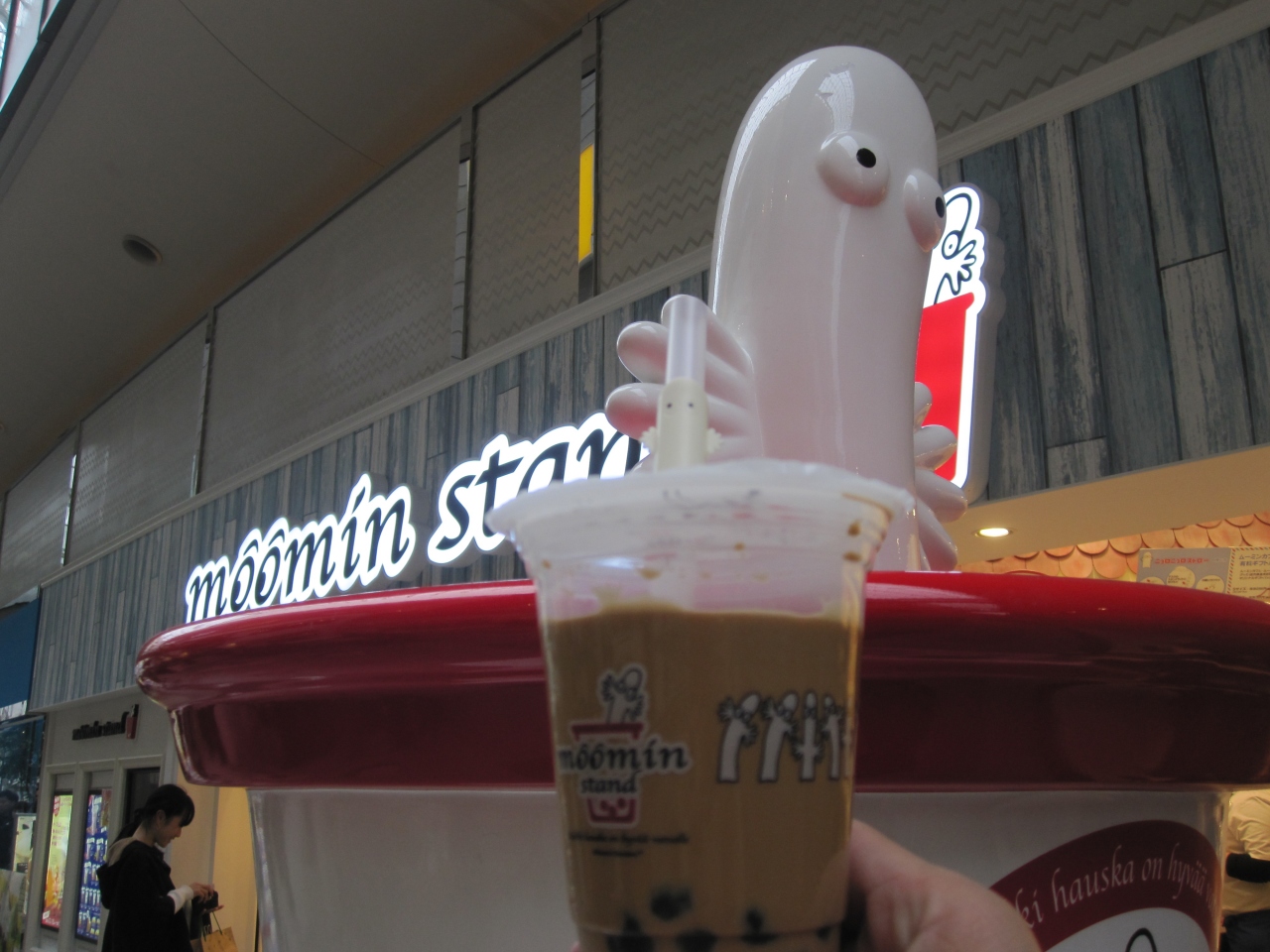 umieの1階にあります。にょろにょろのストローで飲むドリンクや、ムーミン型のワッフルなど、ムーミン好きじゃなくても、その可愛さについつい立ち寄ってしまします。ムーミングッズも売っています。お誕生月に行くと、バースディカードが頂けました。