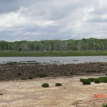 ナラワラ と言う侵食されたミズナラの林が見えて来ました。