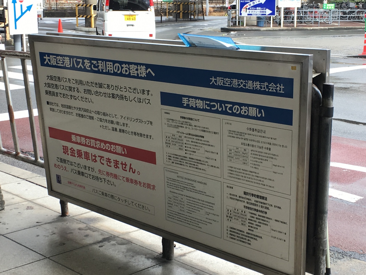 運賃500円の新大阪駅発を利用しました。現金では乗車できず乗り場前にある販売機で切符を買うか、ICカードでの支払いです。利用した日は5分遅れの出発で30分程で到着しましたが、混雑する時は50分程かかるそうです。所要時間が読めないのがネックです。