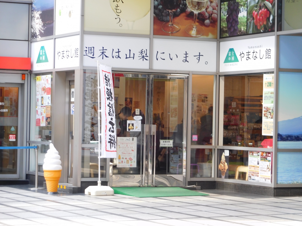 日本橋プラザビルの1階、表に面した場所にある、山梨県のアンテナショップです。角々したちょっと変わったレイアウトのお店で、山梨県産ワインを中心に、信玄餅(カップに入ったアイスバージョンもありました!)、ほうとう、果物のジャム、工芸品などが揃っていました。。ほうとうはいくつか種類が置いてあり、化学調味料無添加の真空パックになったものがあったので、購入しました。建物の内側の方には、山梨県の観光パンフが豊富に置いてあるので、観光情報も集められます。