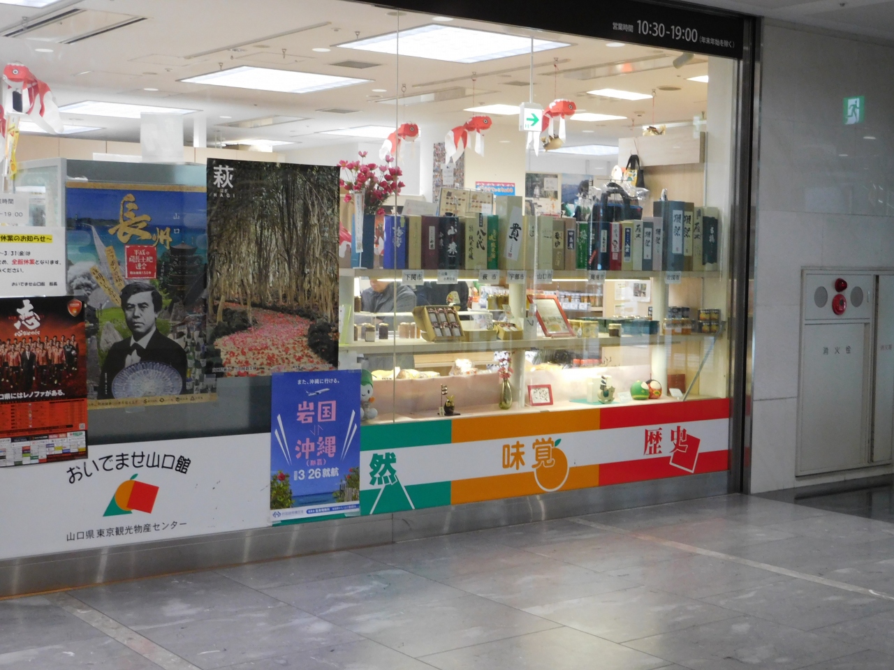 日本橋プラザビルの1階、建物の奥の方にあるお店です。(入り口側には、山梨県のアンテナショップ「富士の国やまなし館」があります。)長細いレイアウトのお店で、「ふぐ」の他にも、山口県の名産品、お菓子、萩焼や工芸品なども並んでいました。下関のカモンワーフを思わせるような感じのお店で、懐かしくなりました。