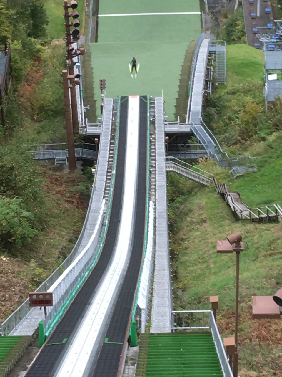 テレビでは見たことのあるジャンプ競技場でしたが、実際に見ると大変高くて、感動しました。