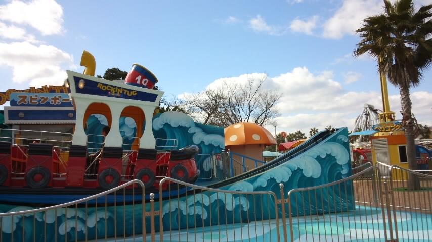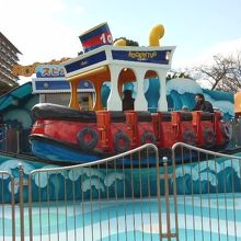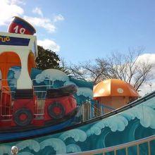 幼児には驚き。バイキングのミニ版かと心に余裕をもって乗り込んだのですが、途中から方向はバラバラ、予想しない方向にボートが勝手に動き回る。思わずしっかりと安全棒を握りしめているお孫ちゃんの手に重なていました。バイキングではなくスピンと書いてあるのだから、もっと予想していなくてはいけませんでした。