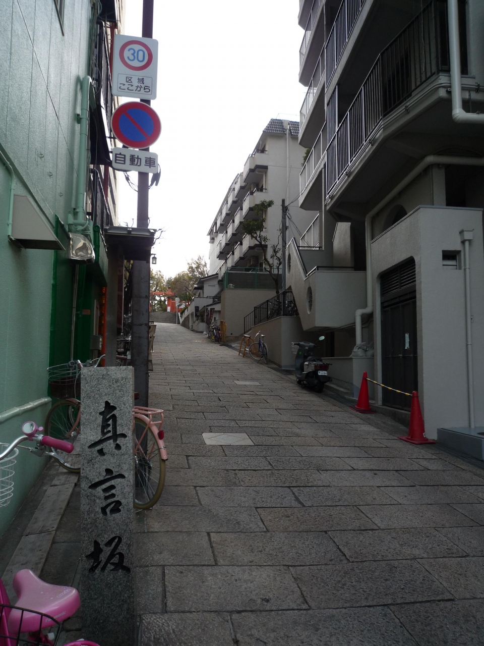 1番北にある坂です。他の坂が東西にある坂に対し、真言坂は南北に延びている坂です。