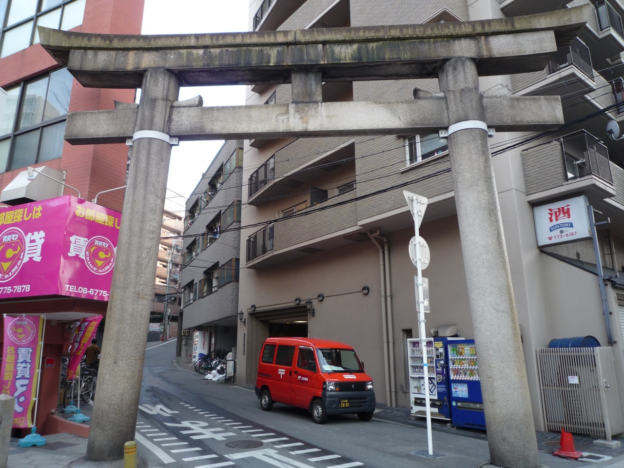 1番わかりやすいのは千日前通りと松屋町筋の交差点にある石鳥居を登る