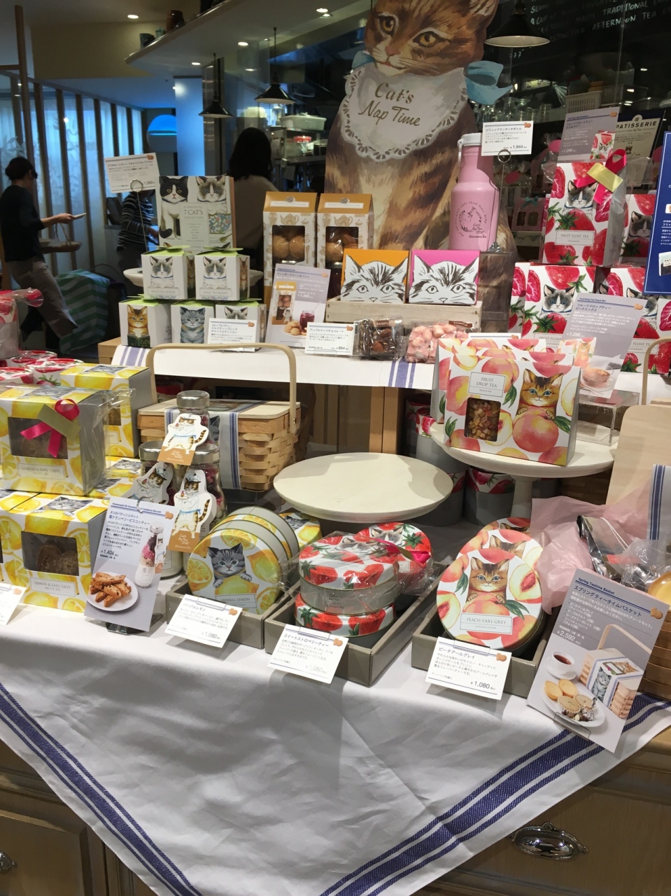 自由が丘の東急ストアの上に入っているアフタヌーンティのレストランです。この日はレストランの利用ではなくプレゼントの購入に利用しました。少しですがお店の入り口前にプレゼント用のギフトも置いてあります。今のシーズンはかわいい猫のラッピングがされていました。自分用にも1つ購入してしまいました。喜んでもらえるといいと思います。