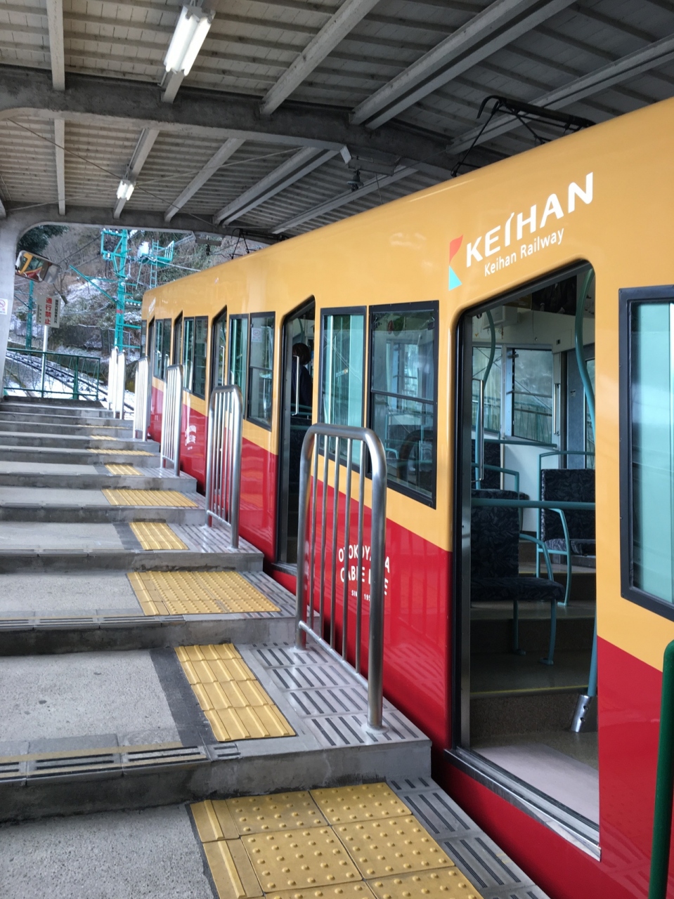 山の上にあるとは知らず車を駐車場に停めて、京阪のケーブルカーで山頂まで行き、そこから7~8分歩きます。ケーブルカーで行く時はすぐ横にコインパーキングがありそちらの方が安くて便利。