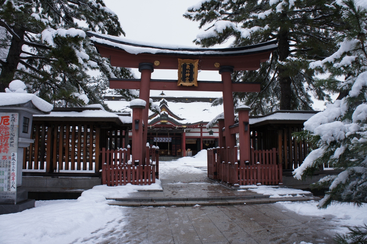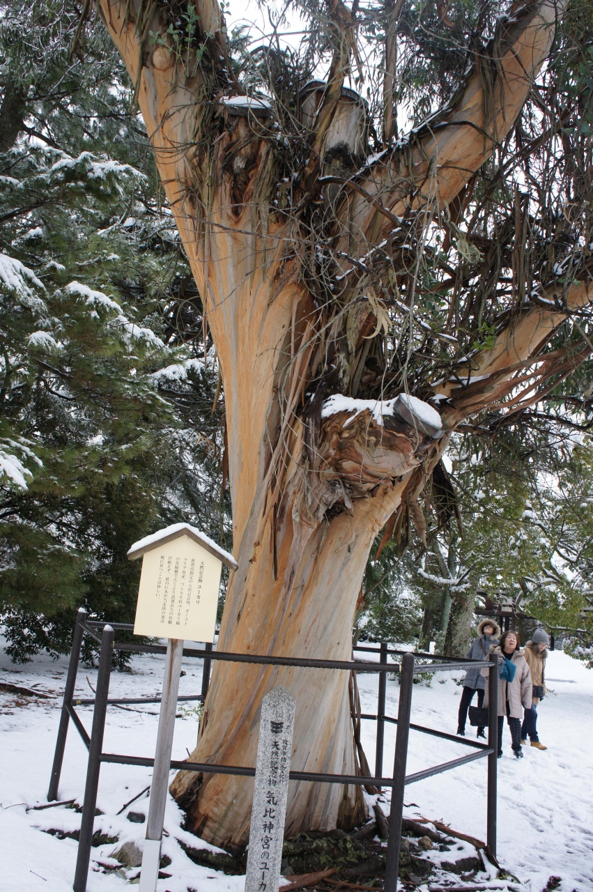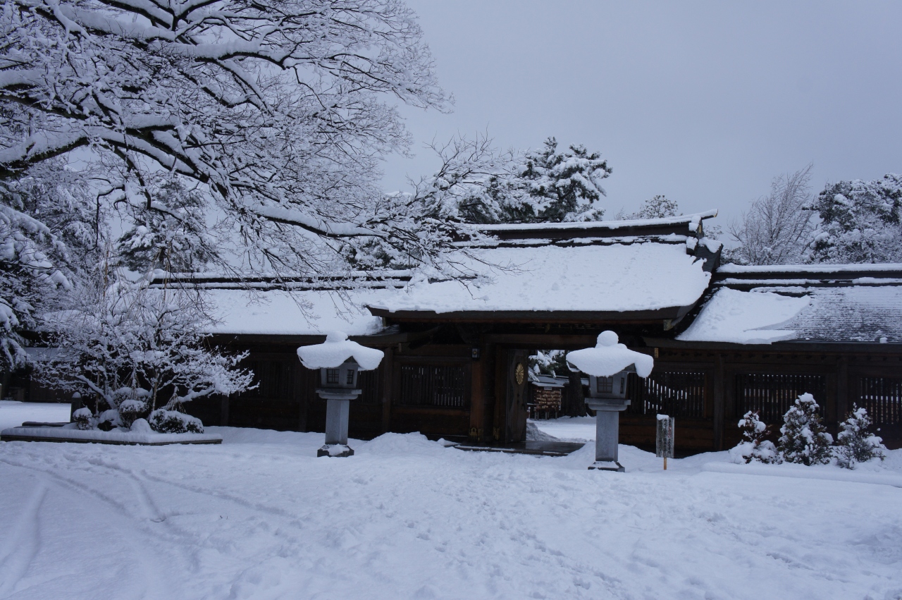 若狭方面へのバスツアーで敦賀市にあるこの神社に立ち寄りました。雪の中に佇む神社はどことなく荘厳な感じがしてなりません。駐車場から左周りで参道を歩きます。すぐ右手にユーカリの大木が見えます。さらに進むと、奥に大きな赤い鳥居が見えます。門をくぐると本殿が見えてきます。門扉には菊の大きなご紋がかかっています。天皇家にゆかりのある神社だとすぐわかります。本殿の前で今年の健康を祈って参拝しました。おみくじを引いたら何と!大吉でした。今年は何かいいことありそうな。