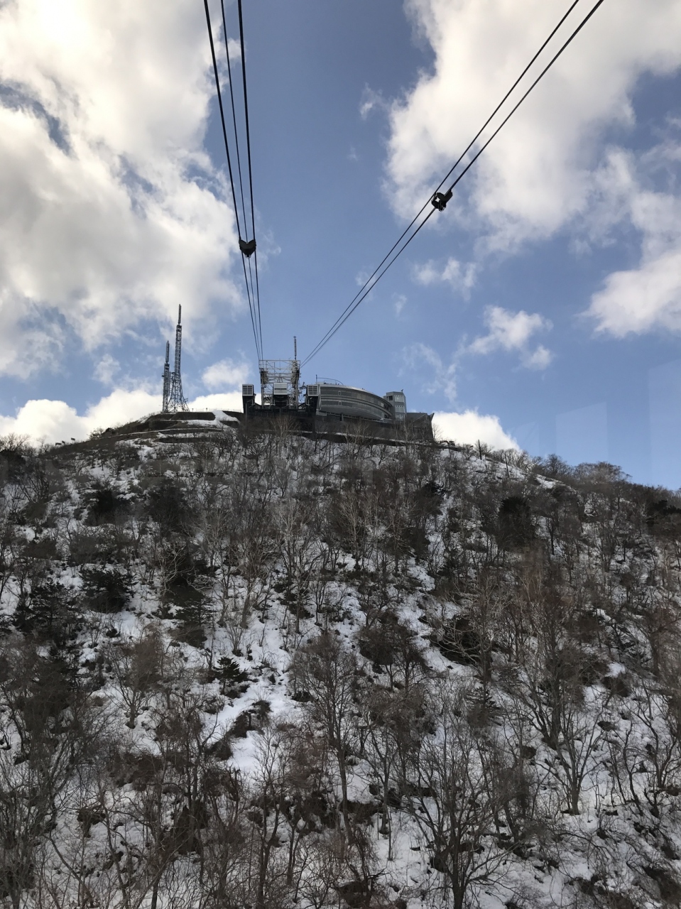 函館山には何年か前に夜景を観に来ましたが、今回は昼間の景色を堪能しました。3階に上がると函館湾と津軽海峡が同時に見える素晴らしい展望台です。ただ、外なので風邪がビュービュー吹いているとかなり寒いですね。