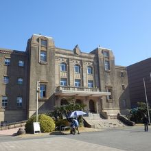 西郷隆盛銅像の目の前にあるレトロな建物です。銅像の撮影スポットとして一段高くなっているエリアがこちらの建物の目の前にあるので、観光客が大勢行き交っていて、観光案内のボランティアの方もいらっしゃいました。