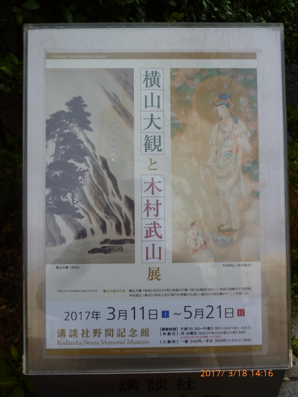 目白通りに面した文京区関口にある、講談社の野間記念館です。 今回は3月11日から5月21日の日程で、横山大観と木村武山の展覧会が開催されていました。 お庭がとてもきれいで、とても良く手入れされています。 境内にあるヒマラヤスギの大木がとても雄大です。