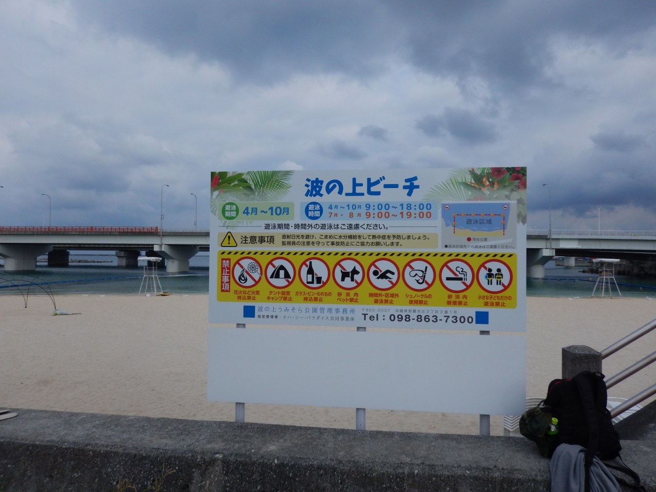 朝8時過ぎに宿から歩いて行ってみた。9月になったばかりの沖縄なので泳ごうと思えば泳げたが、水着を持ってきていなかった。朝なので泳いでいる人はほとんどいなかった。