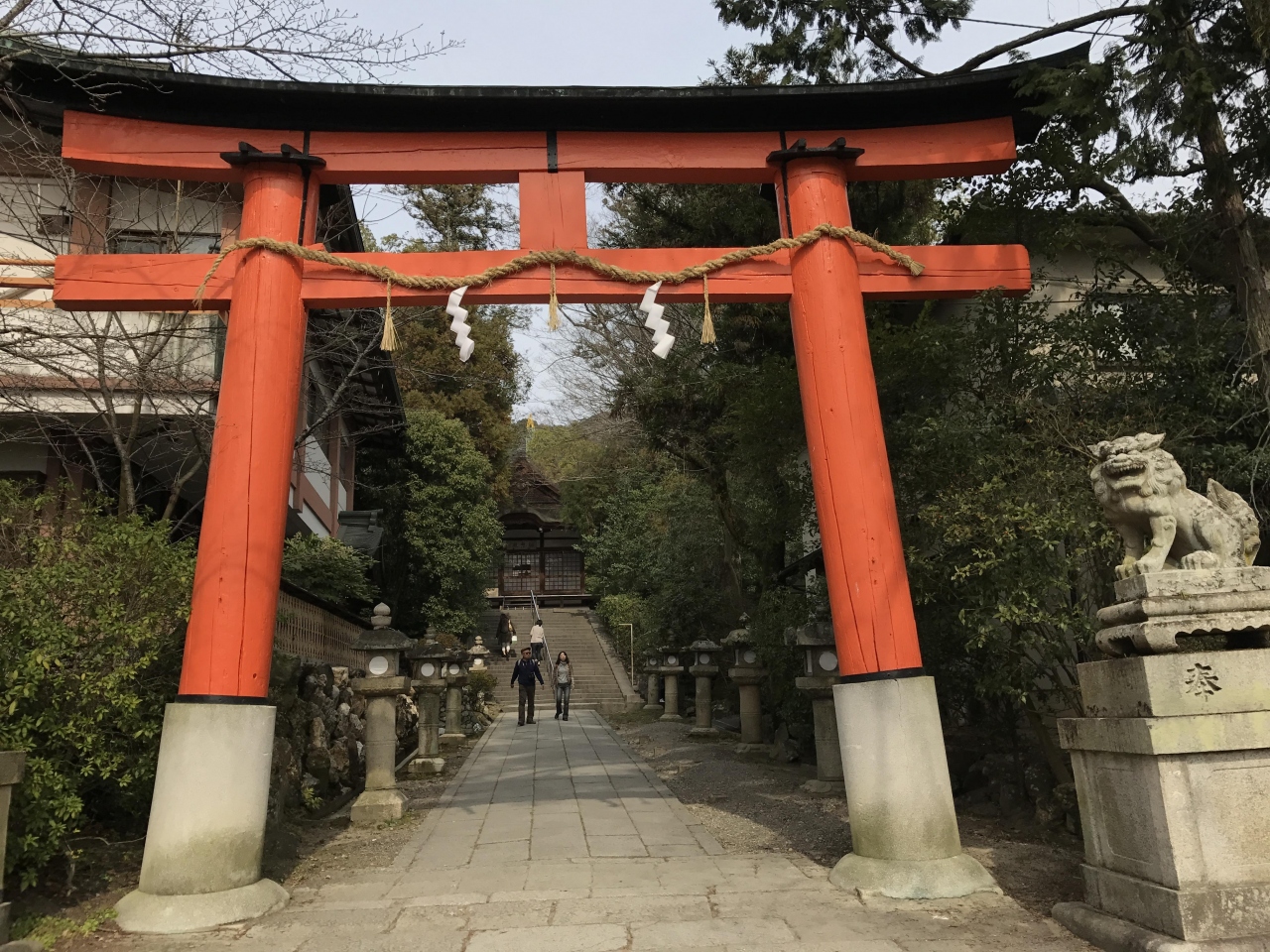 祭神は、応神天皇に寵愛された皇太子菟道稚郎子命 (うじのわきのいらつこのみこと)。学業の神様として崇められ、知恵の輪くぐりでも有名。
