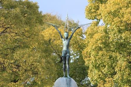 折り鶴を捧げ持つ少女は、鶴の羽根に掴まって、どんな世界へ…なんて物語を夢想しますね。そして、この像の周囲に捧げられた千羽鶴の数々にも圧倒されました。捧げられる祈りや誓いは、ことHIROSHIMAやnuclearだけに止まらず、さらに普遍的なものに向けられていると信じたいところだなあと、ここの像の前に足を止める日本人だけではない訪問客を見ながら感じてました。
