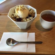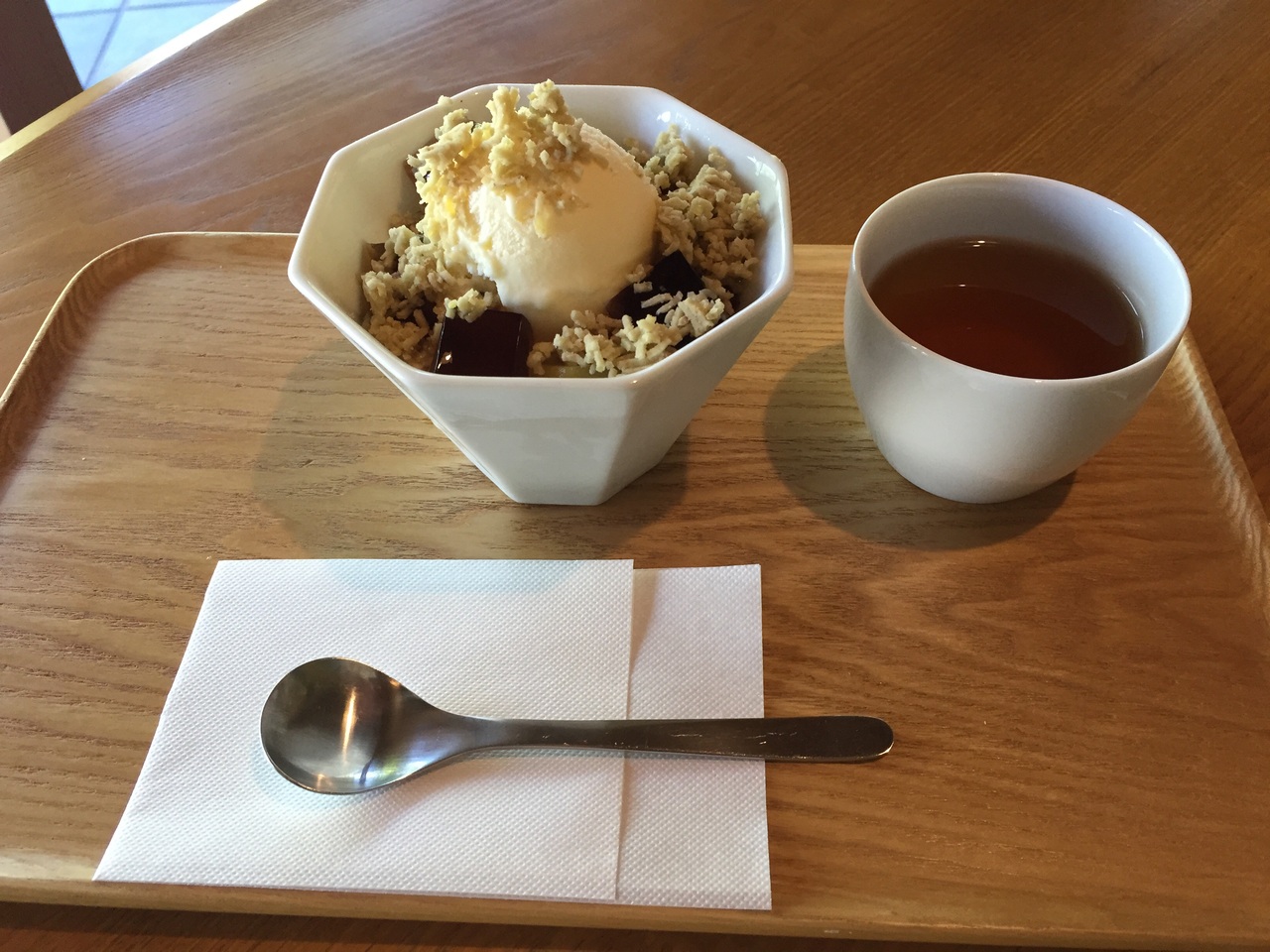 栗のソフトに紅茶?味のゼリー。ボリュームはそれほど多くないですが、和菓子屋さんらしいパフェです