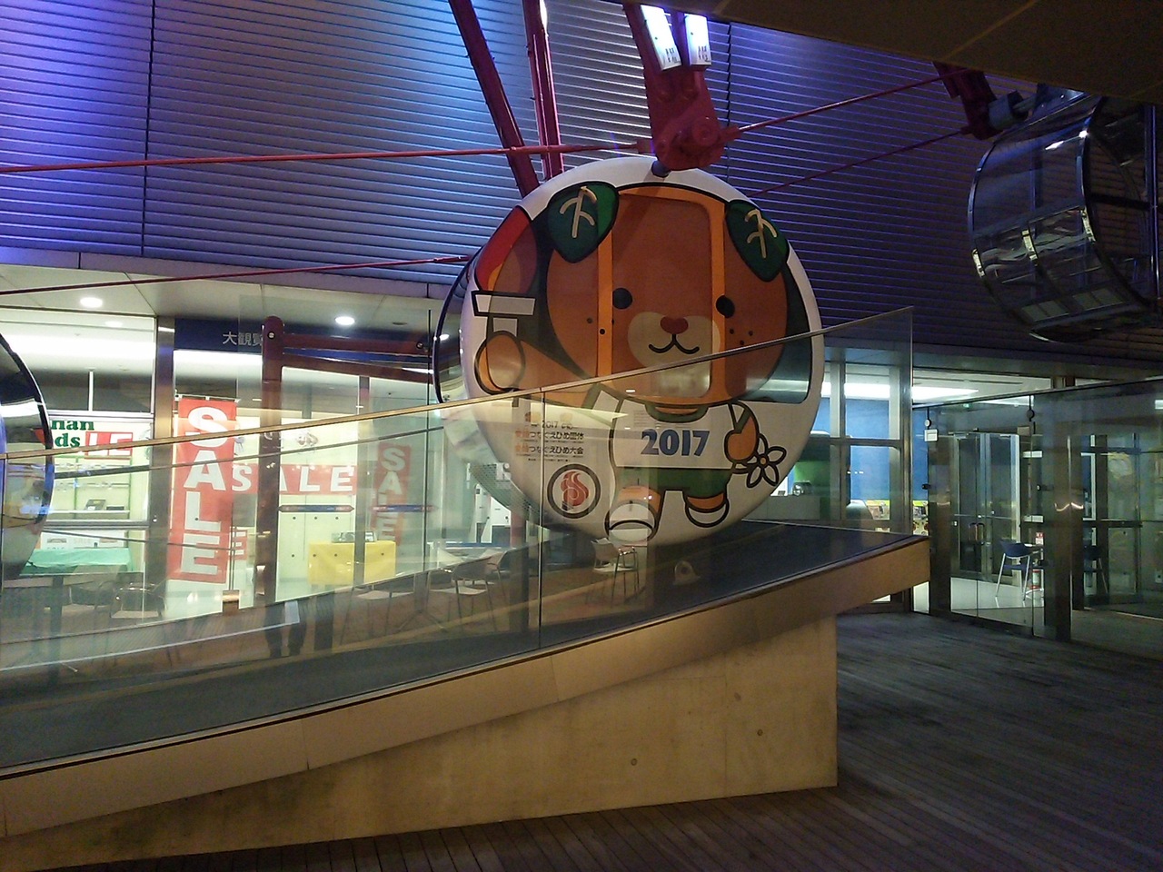 伊予鉄道の1日乗車券を見せると大観覧車くるりんが乗れるということでやって来ました。夜景がキレイでした。ただ、観覧車は全然お客さんが全くいなくて、ちょっぴり心配です。観覧車降りたら、さらにプレゼントをくれました。Tシャツもらいましたが元とれてるのかな?