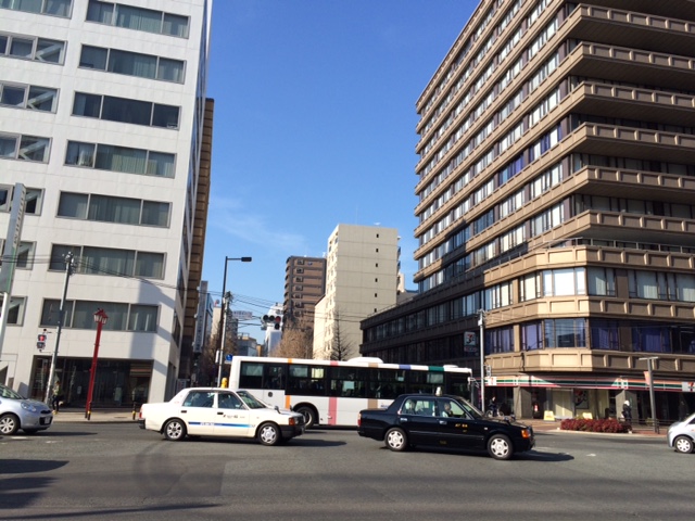 沿線沿いはオフィス街になっていてビルばかりの通りです。