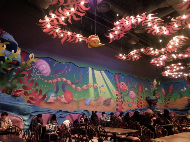 マーメイドラグーンの中にあるので、店内の装飾も海の中をイメージして作られています。フレンチフライポテトやポップンシュリンプなど、手軽につまめるものがあるので、休憩によく利用します。カップサラダもあるので、ダイエット中にも行ったりします(笑)