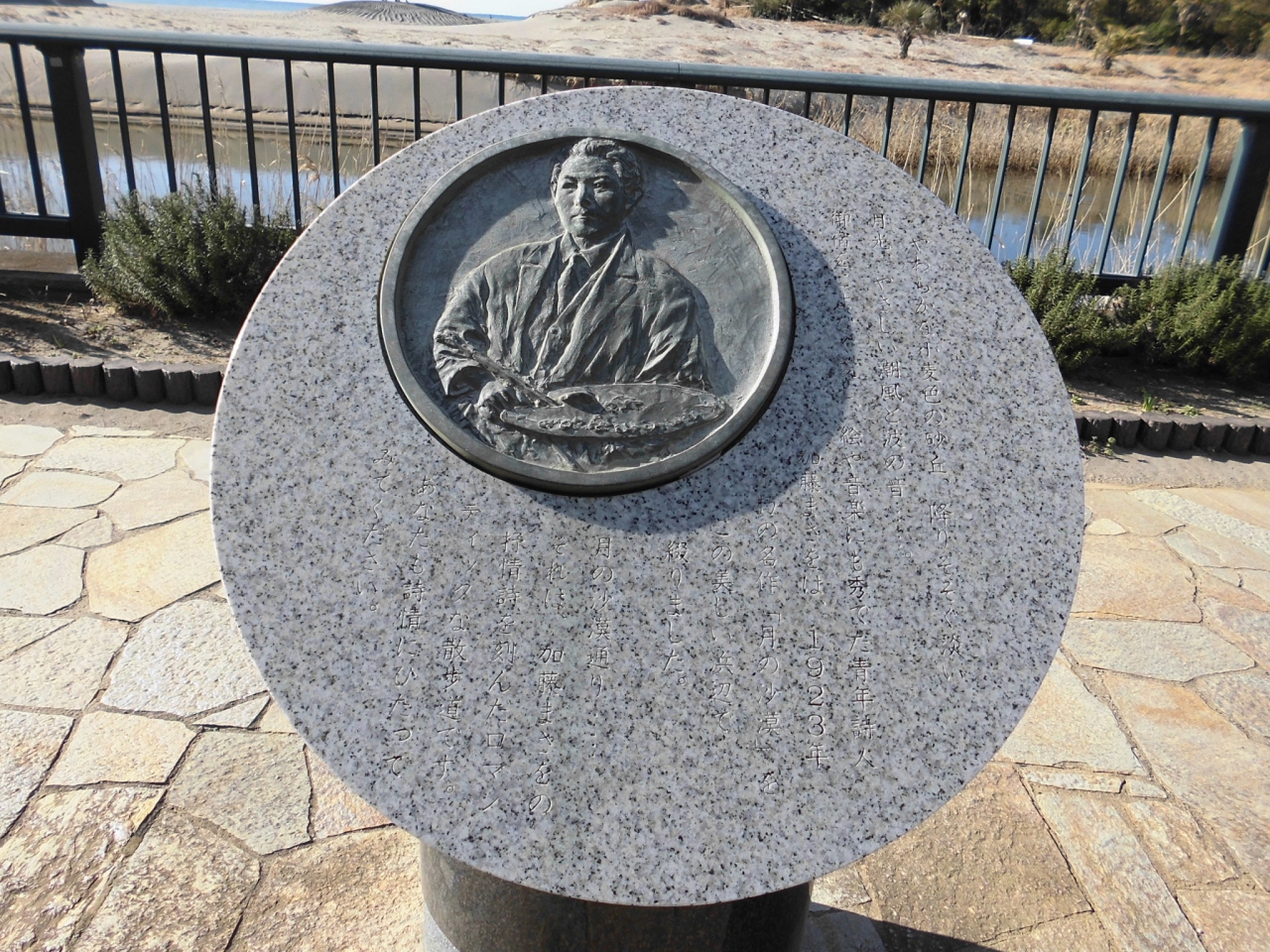 他に何もないところに王子と王女の像があるのがとてもいい感じです。近くには資料館等もありますが、像のそばにはただ砂浜だけです。作者の方が月の沙漠の詩を書く気分になったのが分かるような気がしました。