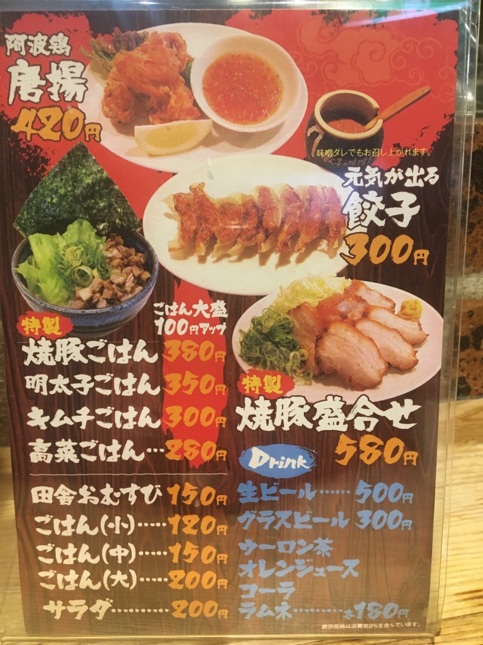 餃子は小ぶりで8個。特徴のないお店。