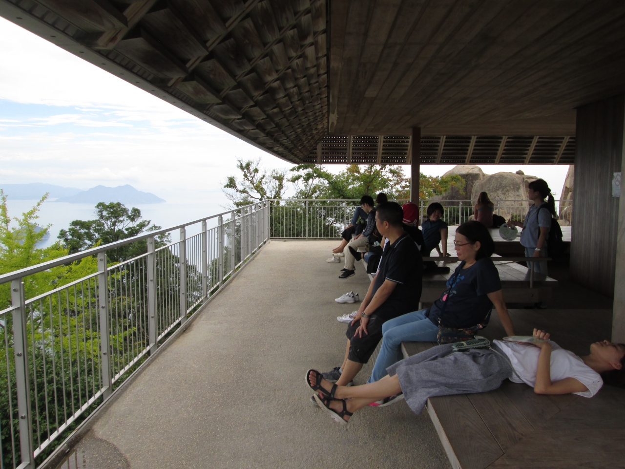 ロッジ風の建物で木のぬくもりを感じながら過ごしました。2階は休憩所になっており、登山客のため座れるスペースがたくさんありました。吹き抜けになっており、弥山山頂に吹くさわやかな風を感じながら休憩することができました。