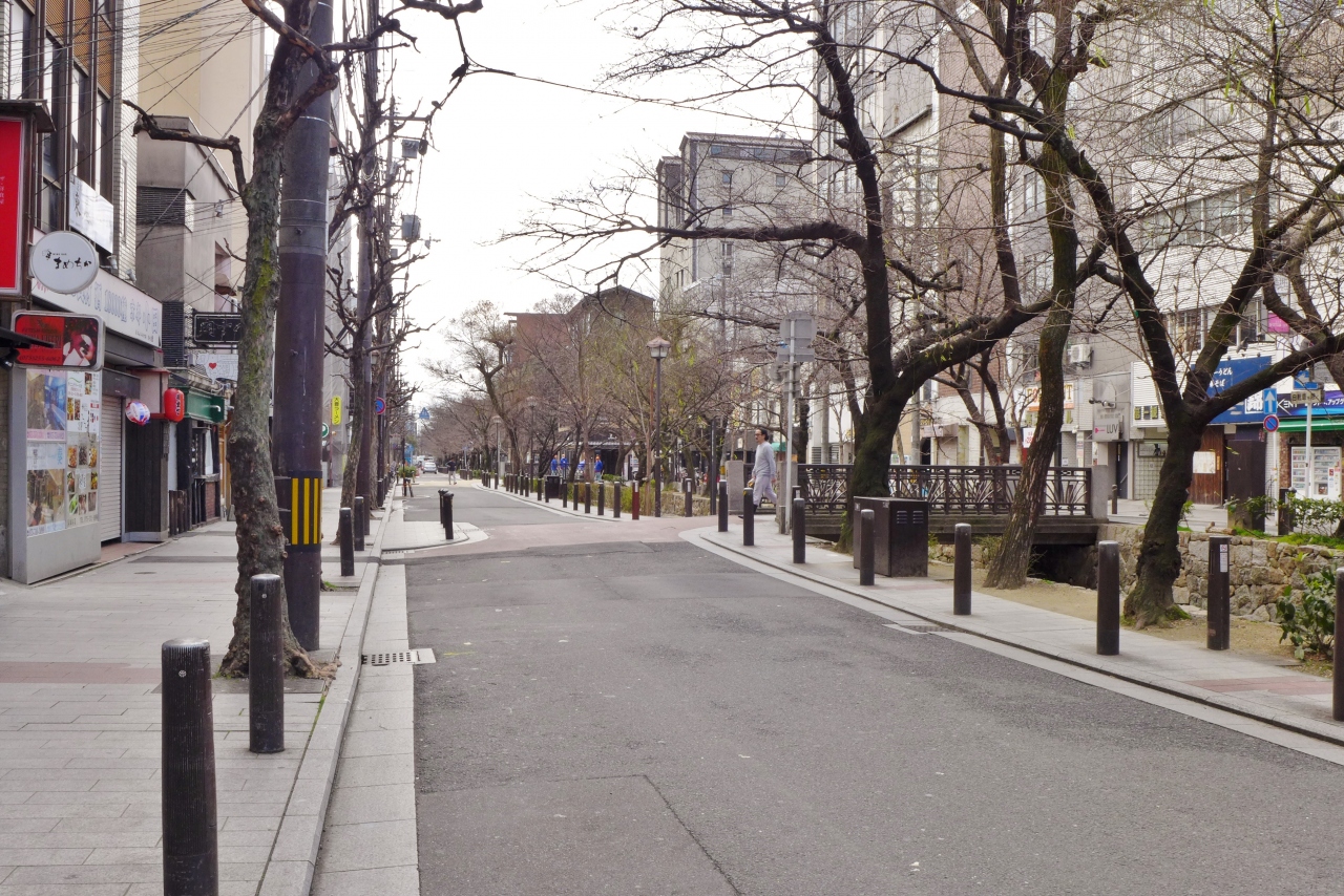 二条通から七条通まで続く通りです。先斗町の西にある高瀬川に沿って歩いてみました。