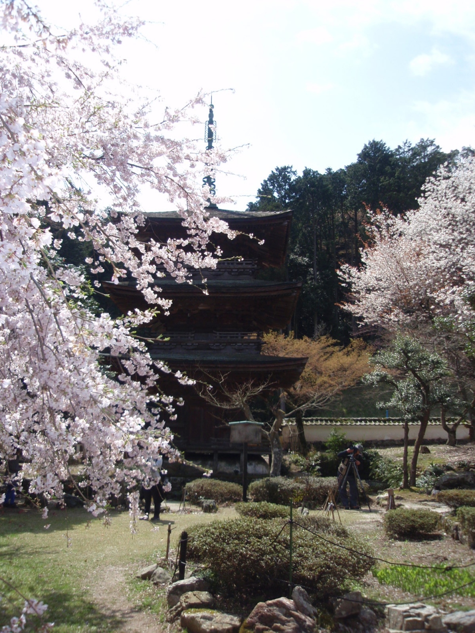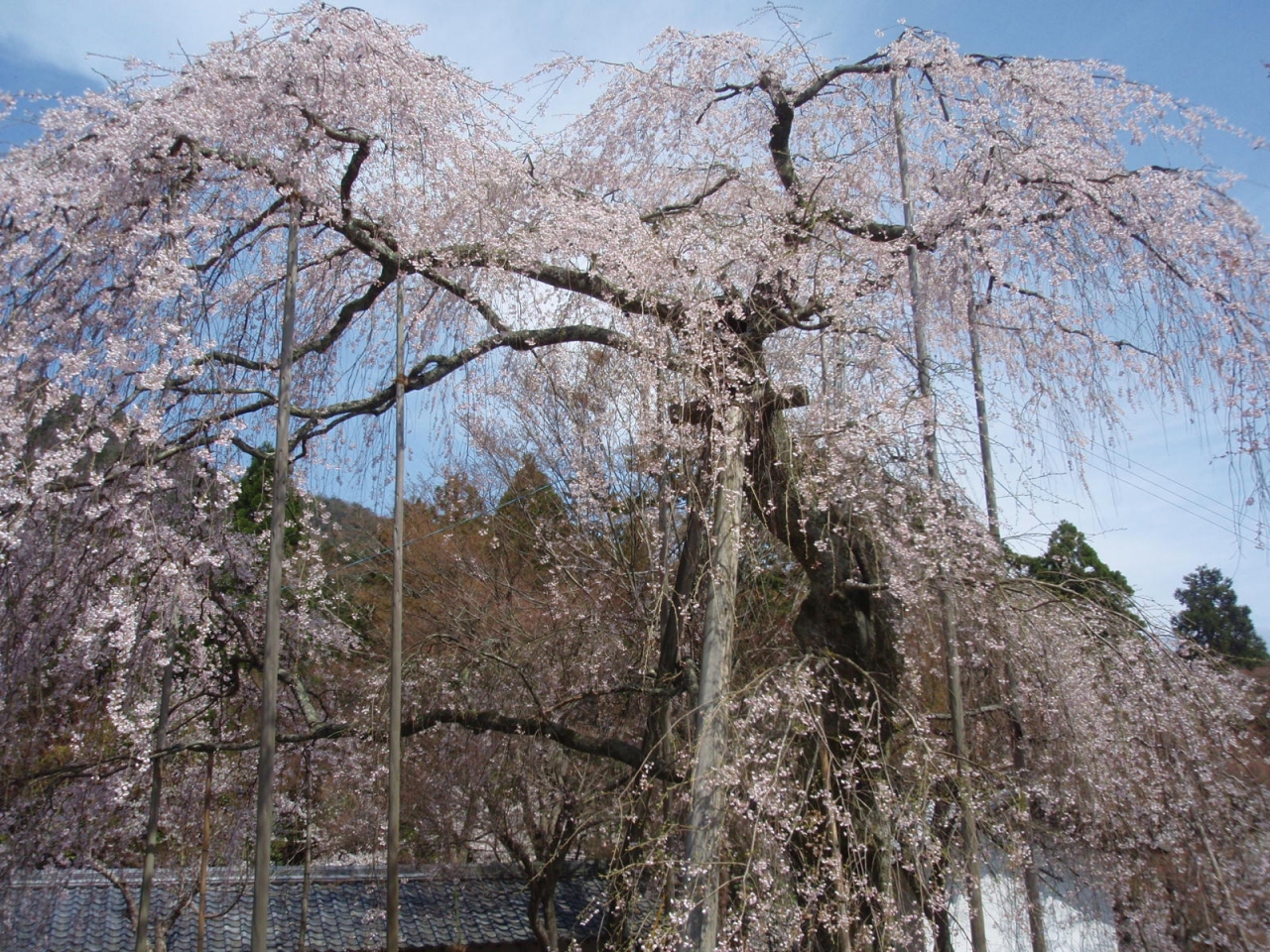 清滝山登山途中、柏原駅より徒歩で25分のところに徳源院というお寺があり、エドヒガン(シダレザクラ)が満開ということで立ち寄りました。徳源院は京極家の菩提寺で、樹齢300年の大きくて、立派なエドヒカン桜2本が満開できれいでした。花をつけた枝が垂下がった風情は何とも言えません。初代の桜は京極家五世京極高氏(道誉)が植えたとされ、現在の木は二代目と三代目だそうです。通称道誉桜と呼ばれています。