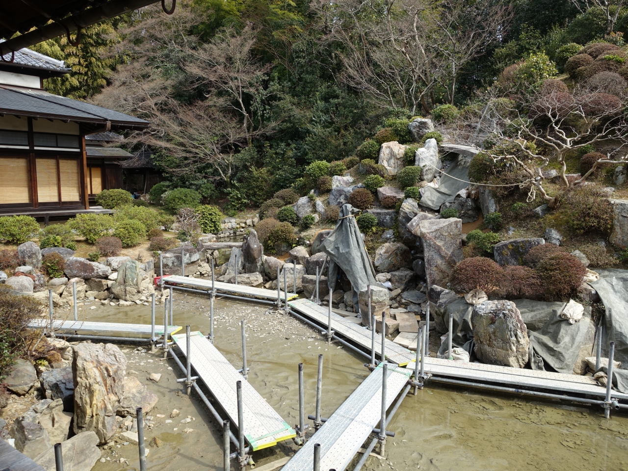 三十三間堂や国立博物館の近くに智積院があります。観光客が少なく、見学しやすいお寺です。残念だったのは、名勝である庭園が、修復中で、水が抜かれていて、いつもの光景も想像するしかない状態だったことです。また、機会があれば、見に行きたいと思います。