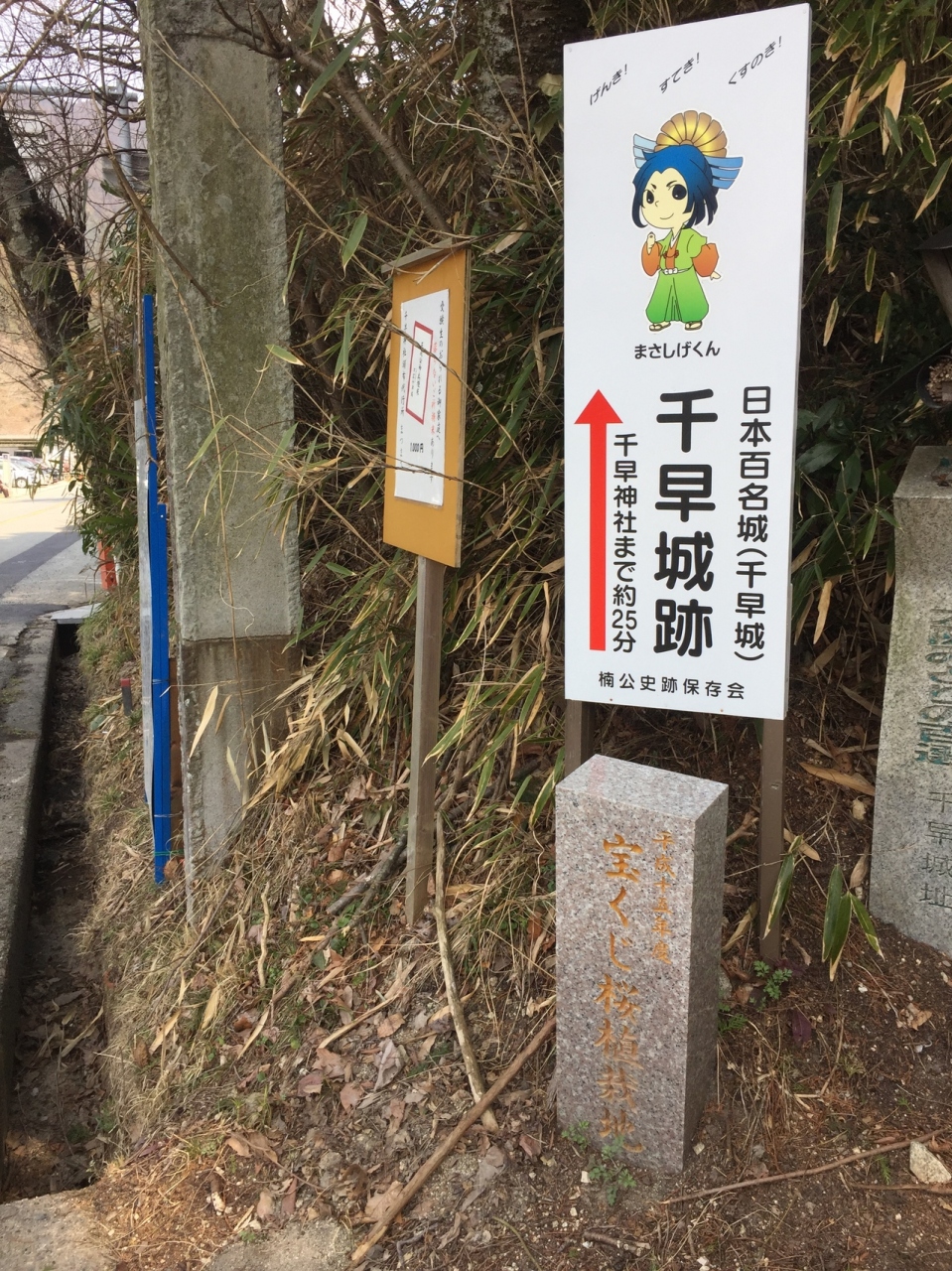 千早城跡は、楠木正成が南北朝時代(1332)に築いた山城。この城だと政府軍と互角に戦えたのがわかるぐらいきつい登り。