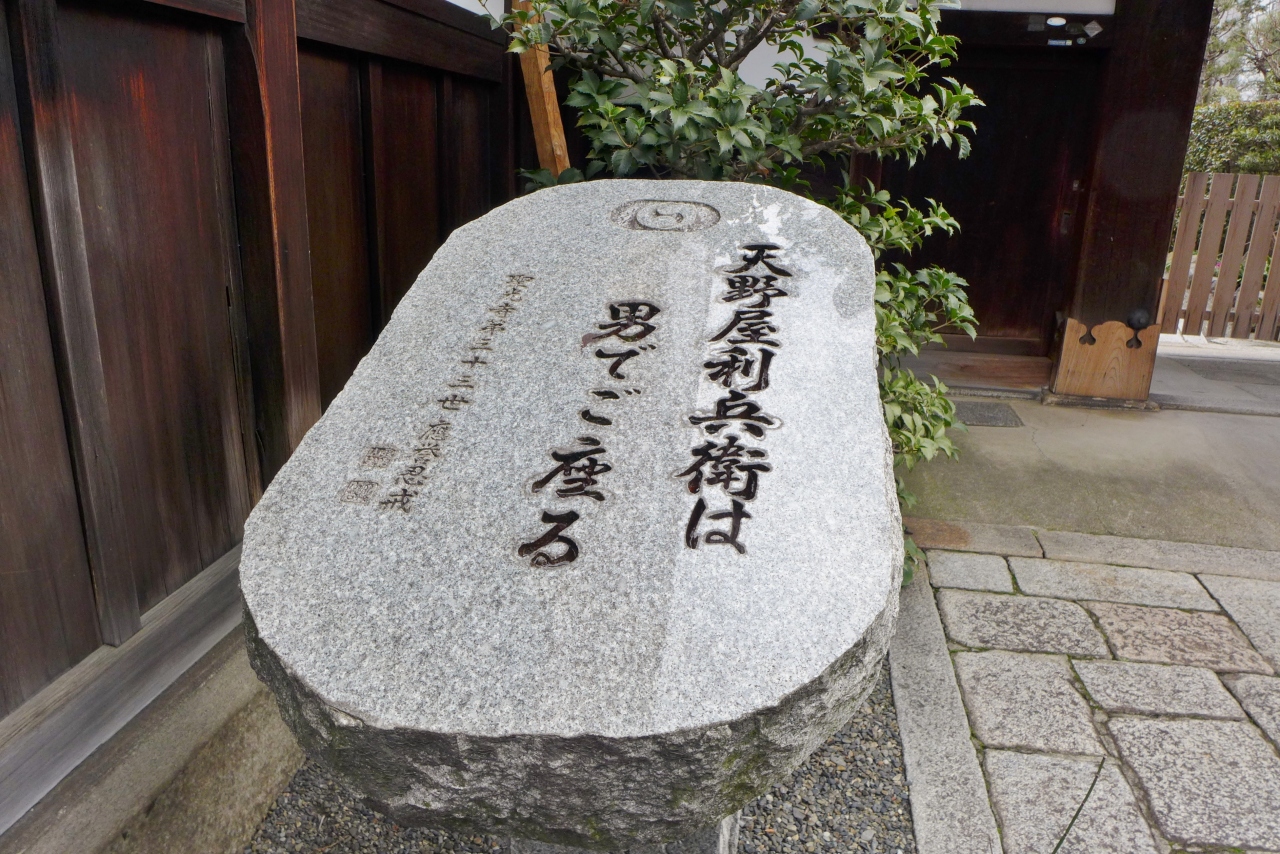 境内に赤穂義士を支援した天野屋利兵衛のお墓があるそうですが、訪れた時は山門に柵が置かれ境内に立ち入ることはできませんでした。代わりに山門前に「天野屋利兵衛は男でご座る」と刻まれた石碑がありました。思わぬところで赤穂義士とのつながりを発見し感慨深いものがありました。