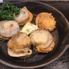 ホタテ焼き、焼きそば、通常の豚玉、モチチーズをいただきましたが、どちらもおいしい。