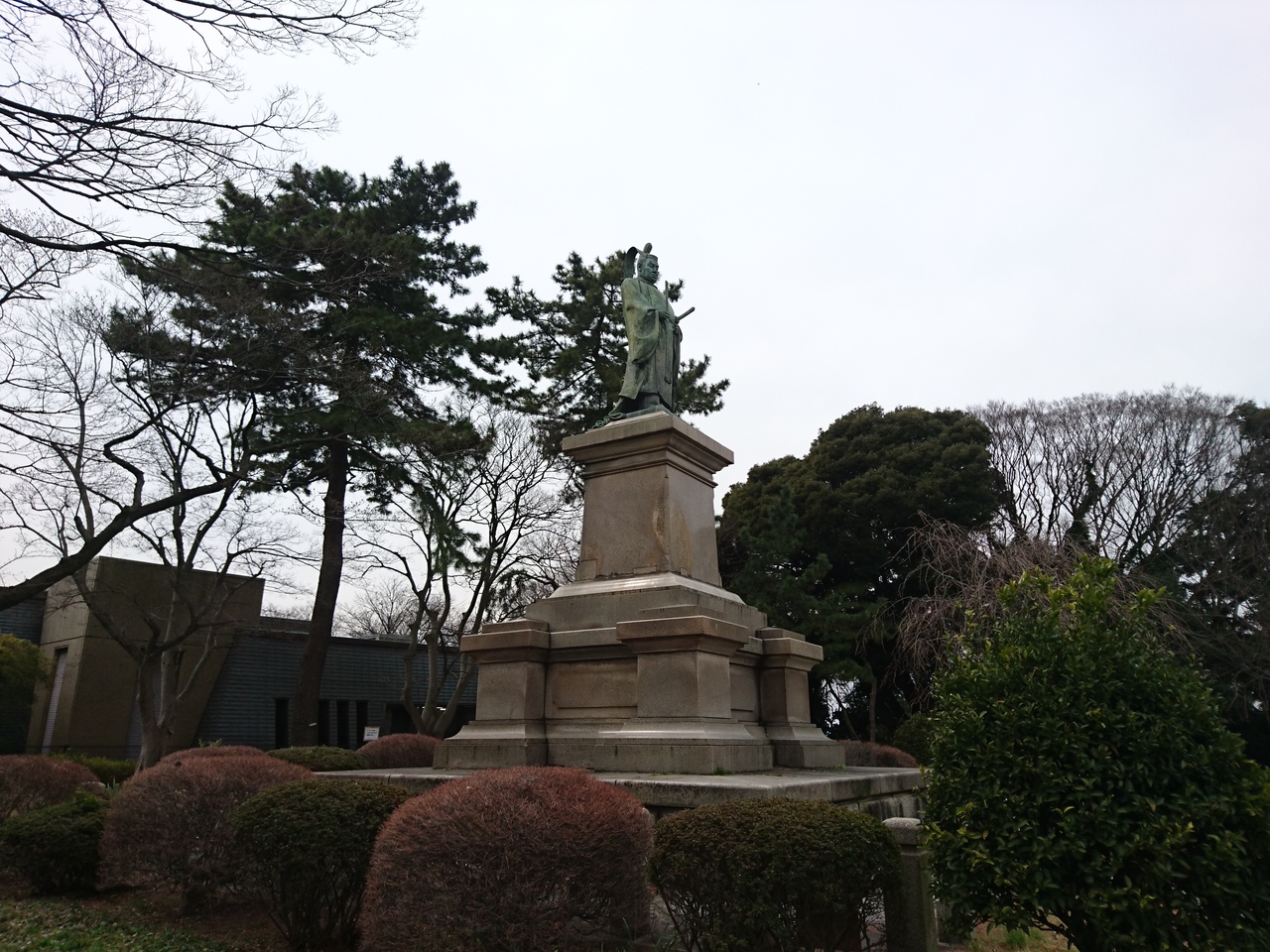 井伊掃部守直弼像は横浜桜木町側の、掃部山公園の最上部にあります。