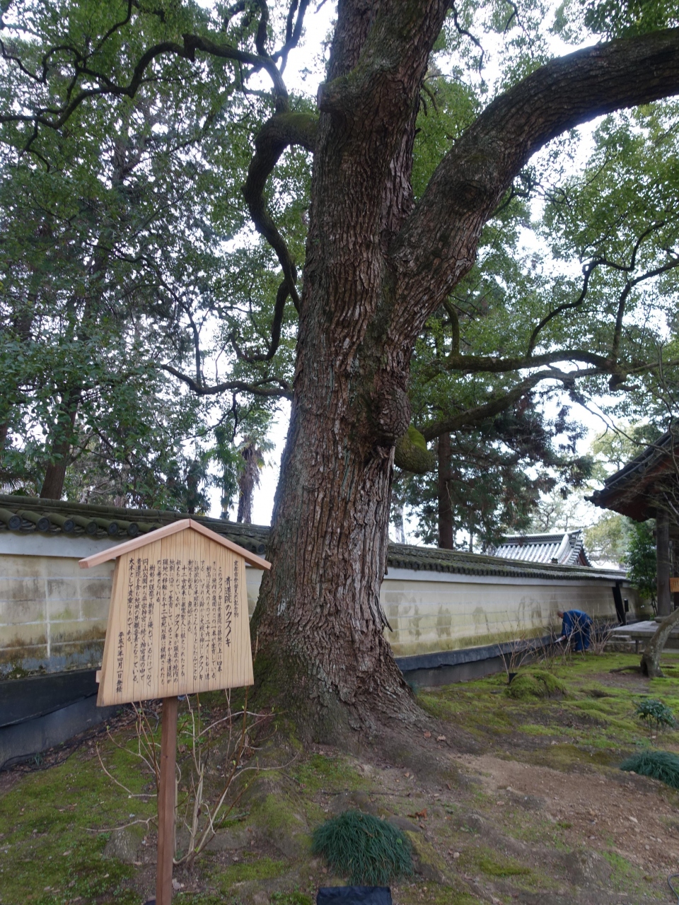 青蓮院の敷地にある楠は、京都市から天然記念物の指定を受けているようで、その旨の案内板がありました。白壁の近くというちょっと分かりにくい場所にありますが、その枝ぶりはなかなかのものです。
