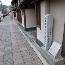 坂本龍馬お龍「結婚式場」跡の石碑が三条通り沿いの歩道に設置されています。