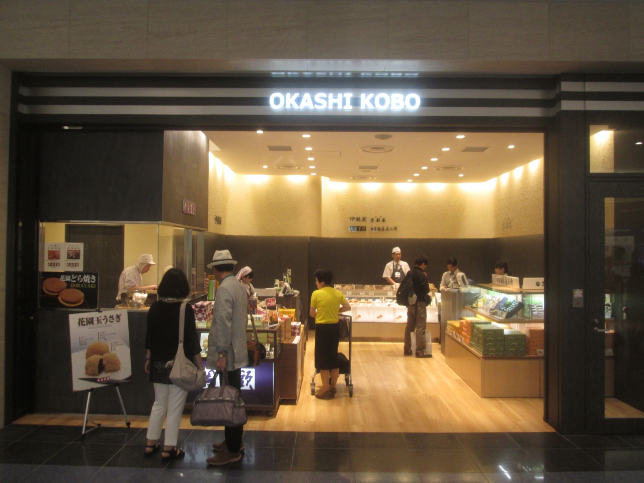 国際線ターミナルの制限区域内にOKASHI KOBOがありました。木村屋、伊藤園などどちらかと言えば高級銘菓を扱っているお店です。空港にもかかわらず、ガラス越しに調理風景を見られる演出もあり、出来立てを数個購入して食べることも可能でした。