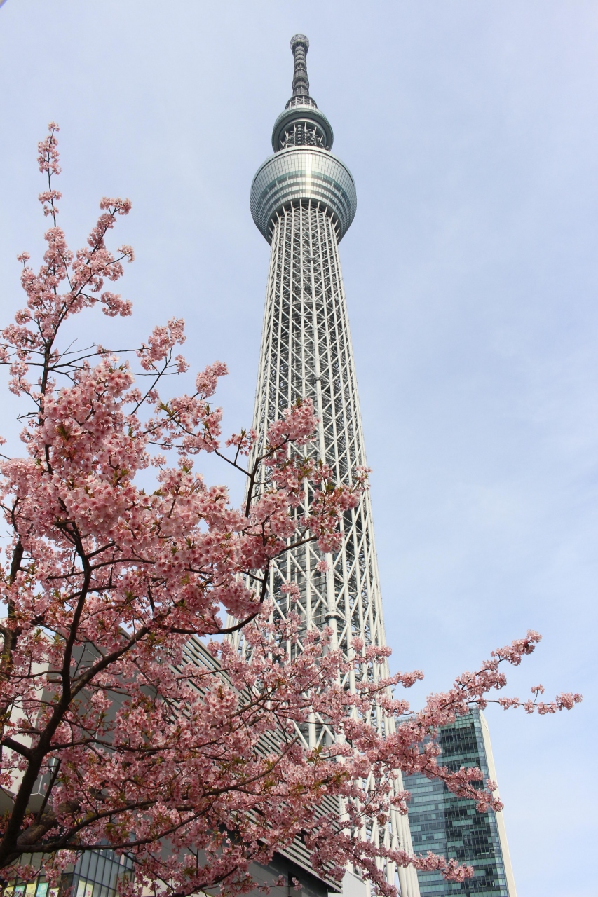 ちなみ、2月下旬の訪問でしたが、スカイツリーのたもとに河津桜が1本、きれいに咲いていました。