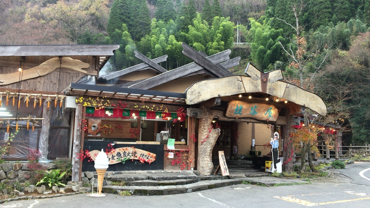 大分、熊本の温泉巡りの道中にて立ち寄ったお店がここ「九重 桂茶屋」。お昼時からは、時間がずれていたこともあり、また、気温も低くなっていて、身体が温かいものをほしがっていました。そのこで、目に入ったのが、”地鶏うどん”。運転者だったので、酒で身体を温めることができず、適度に味が染みたうどんにて、ちょっととしたひと時を過ごすことができました。お店の窓からも素敵な渓谷(九酔渓)・・な景観を見ることもできますよ。紅葉の時期を過ぎてしまいましたが・・。