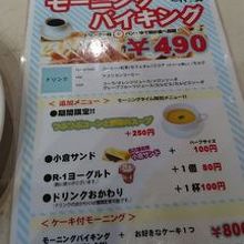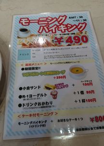 名古屋駅地下街のサンロードの店舗です。どこかでモーニングと思い、見つけたお店です。入口近くのカウンター席は喫煙者用で奥が禁煙席になっていました。ほぼ、満席でした。モーニングはドリンク1杯にパンとゆで卵が食べ放題です。パンは4つの籠に小さくカットされ入っていました。ツナサンド(ツナが薄いしぱさぱさ)と3種類の甘めのパンです。取り敢えず一切れずついただきました。もう少し種類も多く美味しいパンが食べられるのかと思いましたが、490円では致し方ないですね。